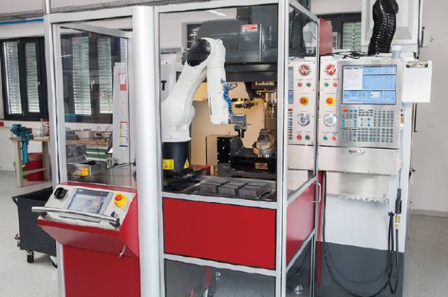 在活動機(jī)器人單元中,庫卡KR AGILUS型機(jī)器人在加工中心承擔(dān)裝料卸料工作。