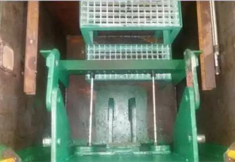 車間設(shè)計制作了一套液壓油缸固定專用工裝安裝于鉗工作業(yè)區(qū)的地坑內(nèi)。不用時,鉸接機構(gòu)打開,工具旋轉(zhuǎn)放入地坑內(nèi),并蓋上格柵。使用時,將地坑的格柵打開,上部固定槽鋼從下面翻到上面,將液壓油缸吊入地坑內(nèi),液壓油缸耳環(huán)插入固定耳板中,耳環(huán)孔內(nèi)插入銷子,將上部固定槽鋼和下部固定槽鋼同時用螺栓收緊。底部同時有一層摩擦材料,通過槽鋼、摩擦材料及下部耳孔的銷子共同固定,使得液壓油缸既不會擺動,也不能轉(zhuǎn)動,以方便液壓油缸螺母的拆松和液壓密封件的更換。