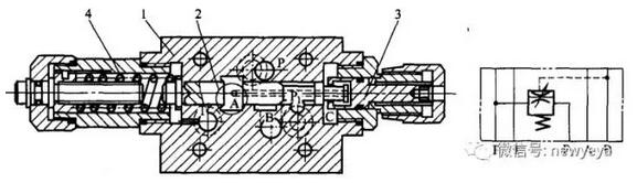 1-閥體;2-閥芯;3-節(jié)流閥調(diào)節(jié)桿;4-順序閥彈簧