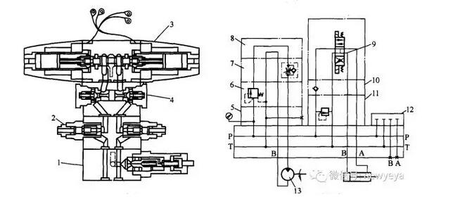 圖1 控制兩個執(zhí)行器(液壓缸和液壓馬達(dá))的疊加閥及其液壓回路