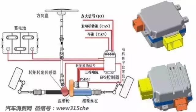 電動(dòng)助力轉(zhuǎn)向,簡(jiǎn)稱EPS,是一種直接依靠電機(jī)提供輔助扭矩的動(dòng)力轉(zhuǎn)向系統(tǒng)。EPS主要由扭矩傳感器、車速傳感器、電動(dòng)機(jī)、減速機(jī)構(gòu)和電子控制單元(ECU)等組成。