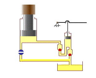 再次提起手柄吸油時(shí),單向閥7自動(dòng)關(guān)閉,使油液不能倒流,從而保證了重物不會(huì)自行下落。不斷地往復(fù)扳動(dòng)手柄,就能不斷地把油液壓入舉升缸下腔,使重物逐漸地升起。